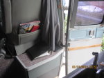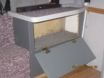* I have been asked about the lack of a pod on the roof and a roof ladder. I did not want a pod - could have gotten one and a roof rack easily enough – because they add weight and makes the coach more top heavy. When I designed the cabinets I increased the size slightly both in height and depth and added a shelf in each of them. I was able to do this since they are powder coated aluminum and weigh much less – an added feature is this also reduces the top weight. I then added shelves in the bedroom and over the door. With the propane tank removed and the space under the couch for storage we get along great. I also use a hitch rack and carry a smoker, grill, and an ammo box with charcoal and wood chips along with lighter fluid because we BBQ and grill a lot.