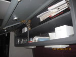 12. NEW custom made powder coated aluminum cabinets in kitchen, over sofa, and wrap-around bookshelves /cabinets in bedroom and drawers in wardrobe. Cabinets have custom made Pecan wood trim.