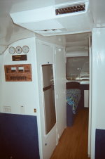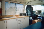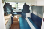 Interior is very airy in white and royal blue. It has been described as "Groovy, Man!