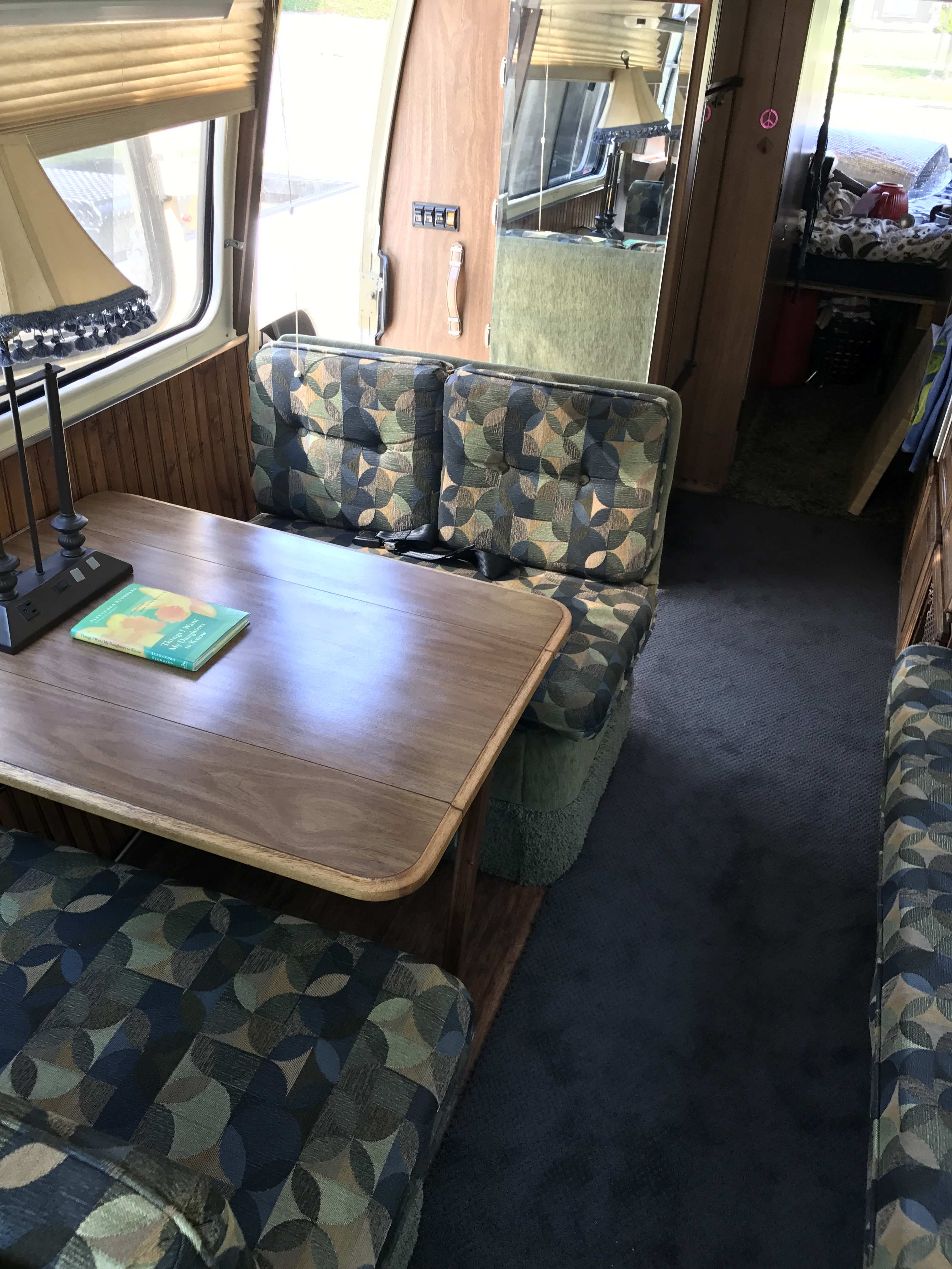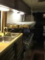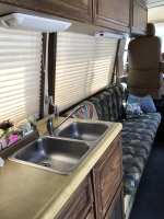 INTERIOR DYNAMAT insulation/cab floor/side walls/rear coach + bedroom New bead board on lower walls All solid oak cabinets refinished/new hinges/shocks New ½" plywood flooring/New carpeting New cab rug/black shag (any motor work or grease will never show : All new upholstery/all new foam in furniture + cushions 9" memory foam double mattress (slept on 6X) Carpathian Burl Dash GPS Navigation system/back-up camera Klipsch speakers New single pole kitchen faucet New stainless steel kitchen fan USB connections/dash/passenger door/dinette wall New bathroom exhaust fan Full size enamel toilet Dual captain chairs/pleather/6 way power/w/lumbar New aluminum seat bolting plates New seat belts/6 passenger + 2 integrated shoulder belts in cab