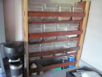 * I have been asked about the lack of a pod on the roof and a roof ladder. I did not want a pod - could have gotten one and a roof rack easily enough – because they add weight and makes the coach more top heavy. When I designed the cabinets I increased the size slightly both in height and depth and added a shelf in each of them. I was able to do this since they are powder coated aluminum and weigh much less – an added feature is this also reduces the top weight. I then added shelves in the bedroom and over the door. With the propane tank removed and the space under the couch for storage we get along great. I also use a hitch rack and carry a smoker, grill, and an ammo box with charcoal and wood chips along with lighter fluid because we BBQ and grill a lot.