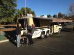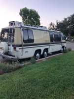 Custom Imron paint and striping in 2003 (still immaculate) 18' Zip Dee awning + passenger side/custom fabric/like new AM/FM/CD player/USB Accordion blinds throughout/slide along front privacy curtain A/C/power steering/power brakes Dual flag holders @ front window/dual air horns/Perlux front lamps Front bumper step/rear tow package Alcoa rims/6 radial tires under 5000 miles Screen door/etched glass window/Ragusa Doorstep Propane tank has auxiliary adaptor for outside BBQ Ramco Automatic remote heated mirrors/dash controls Dual roof A/C's/roof vents w/power fans/ Heating system excellent Immaculate original working 3 burner stove/oven Double sink w/new single pole faucet Refrigerator 2 way/clean/excellent working condition + temperature specs Dual gas tanks (50 gallon capacity = linked together) Air ride suspension w/auto ride height and static levelling Sleeps 6/rear double/dinette double/sofa/bunk over sofa Onan 6000 watt generator w/electronic start/runs strong/new exhaust 7.18) Monitor center/all works/new fire extinguisher Mirrored storage and refrigerator doors New front grill to replace cracked original VIAIR 400C compressor /motor (for inflatable toys)/ VIAIR 2.5 gallon air tank PASSED SMOG TESTS for California 2016 & 2018 NEWLY ACCOMPLISHED IN LAST 1200 MILES 403 Oldsmobile V8/Olds Toronado front wheel drive/w/fuel injection (rebuilt 5/2018) Machined headers at Doug Robinson's/new copper manifold gaskets Edelbrock Intake Manifold (12.17) Rebuilt Manny Transmission AND Differential/3:55 final drive (11.16) Trans cooler lines/compression fittings JEGS Vacuum Pump (2.18) Aluminum water pump/ K+N air filter ALL NEW HOSES throughout/new breather and gas lines Fuel injection/all new harnesses/new fuel lines/hardware Fuel Tank gaskets/fittings/remaining hoses/fuel/vapor separtor Air filter modification to reduce noise Silicone oil hoses/thermostat and gaskets A/C Compressor/replaced in dash evaporator A/C Hoses/Expansion Valves/Drier/Pressure switch Power steering hoses Bogie pin greaser kits Dual purpose bottle jack adapter Two deep cycle house batteries (6.18) Interstate starter battery (6.18) Upper and lower radiator hoses Ignition wires/ Distributor R&R New cap, rotor and spark plugs Remove and reinstall bell crank/tighten bushing Brake pads all new/front wheel seals/front brake rotors Wheel alignment KYB Heavy Duty Front Shocks Airbags BOTH NEW 6.18 /Newride height adjusters Pack front wheel bearings / Front wheel spacers/ Idler arm relay done Generator muffler replaced Macerator pump + kit (new 8.18) 35 gallon Fresh water tank and Shurflo water pump