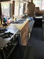 INTERIOR DYNAMAT insulation/cab floor/side walls/rear coach + bedroom New bead board on lower walls All solid oak cabinets refinished/new hinges/shocks New ½" plywood flooring/New carpeting New cab rug/black shag (any motor work or grease will never show : All new upholstery/all new foam in furniture + cushions 9" memory foam double mattress (slept on 6X) Carpathian Burl Dash GPS Navigation system/back-up camera Klipsch speakers New single pole kitchen faucet New stainless steel kitchen fan USB connections/dash/passenger door/dinette wall New bathroom exhaust fan Full size enamel toilet Dual captain chairs/pleather/6 way power/w/lumbar New aluminum seat bolting plates New seat belts/6 passenger + 2 integrated shoulder belts in cab